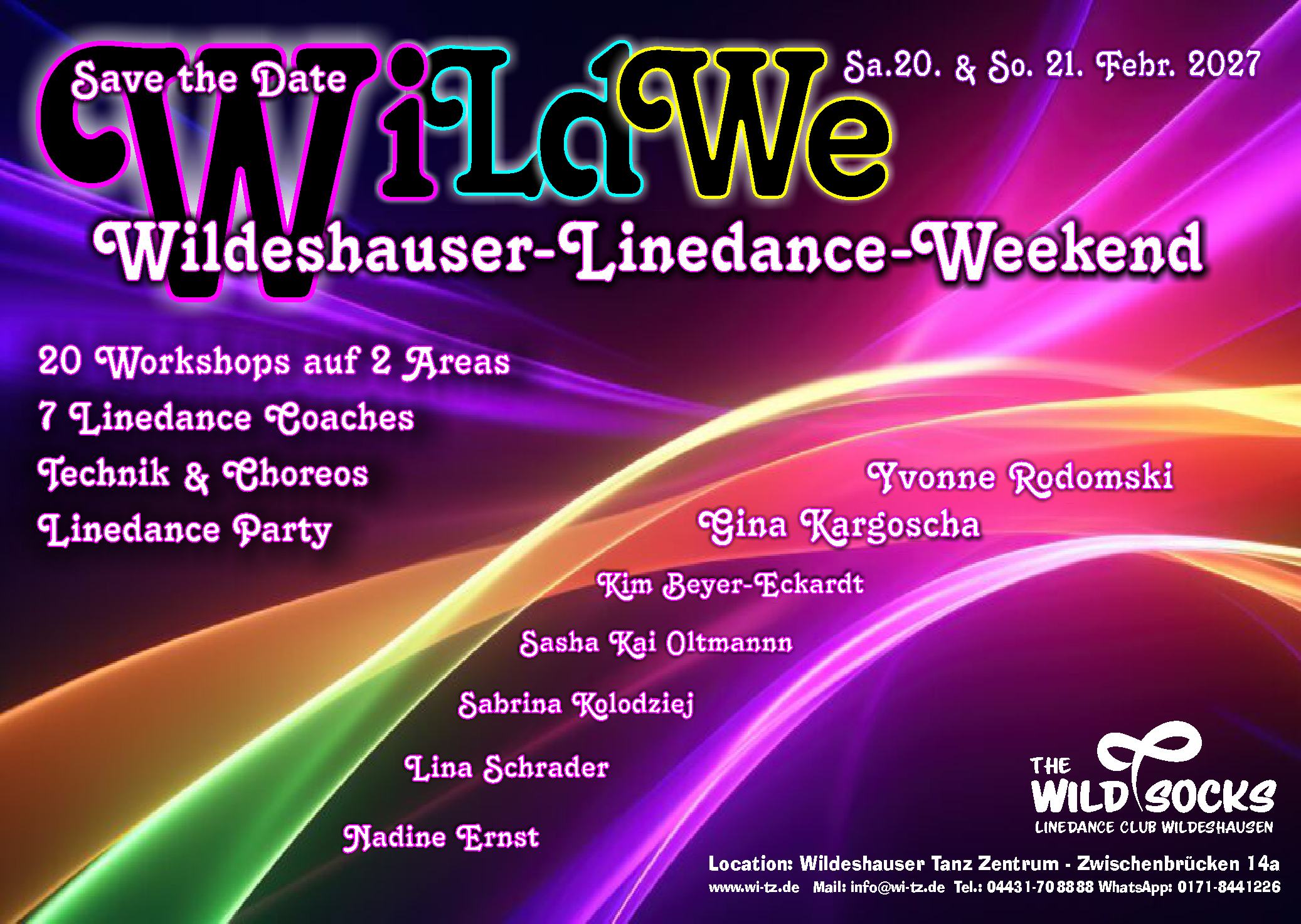 Im Februar 2027 richten die Wild Socks zum zweiten Mal ihr großes Linedance Weekend aus, mit den besten und bekanntesten Coaches aus der Region. Zusammen tanzen mit echten Linedance Meistern.